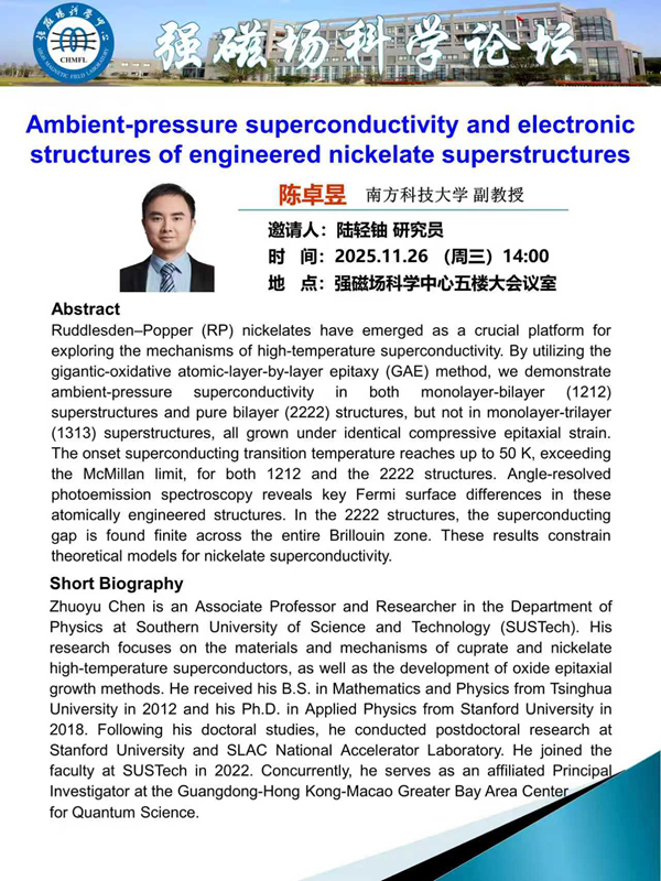 【11.26】学术报告:Ambient-pressure superconductivity and electronic structures of engineered nickelate superstructures