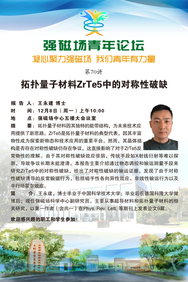 【12.08】学术报告:拓扑量子材料ZrTe5中的对称性破缺