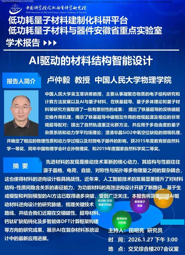 【01.27】学术报告:AI驱动的材料结构智能设计