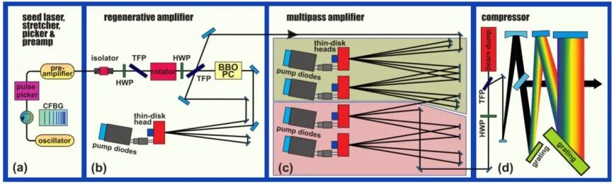 (2)从放大器构型角度划分,主要有再生放大与行波放大两类。