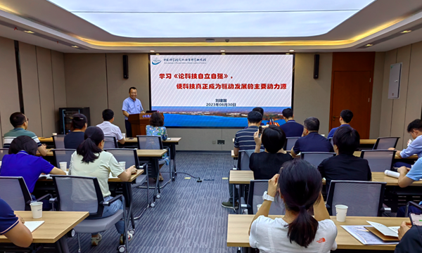 为深入学习领会习近平总书记关于科技自立自强的重要论述,8月30日下午,机关第三党总支邀请合肥物质院院长刘建国作关于科技自立自强的专题党课报告,总支全体党员参加党课,总支书记屈哲主持会议。