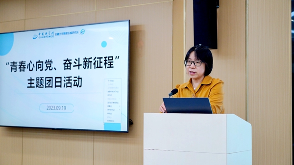 安光所党委书记谢品华为活动致辞,她希望大家通过此次活动交流交心、互学互鉴、同心同行、脚踏实地,早日成长科研核心骨干人才,为安光所创新发展做出积极贡献。