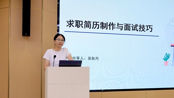 本次团日活动邀请了安光所两位不同专业领域的优秀青年骨干到场与大家交流分享个人经历及工作经验。来自安光所基础中心的周家成博士作了《团十九大代表感悟分享》主题报告,生动列举了青年典型模范事迹,并结合自身科研经历,向大家展示他参加共青团第十九次全国代表大会期间的所见所闻以及所思所想。光电子中心吴秋月老师向各位研究生分享了《求职简历制作及面试技巧》,通过典型案例分析,从正确认识求职、简历撰写投递、面试技巧三方面进行了详细介绍,为研究生的职业规划提出规划和建议。