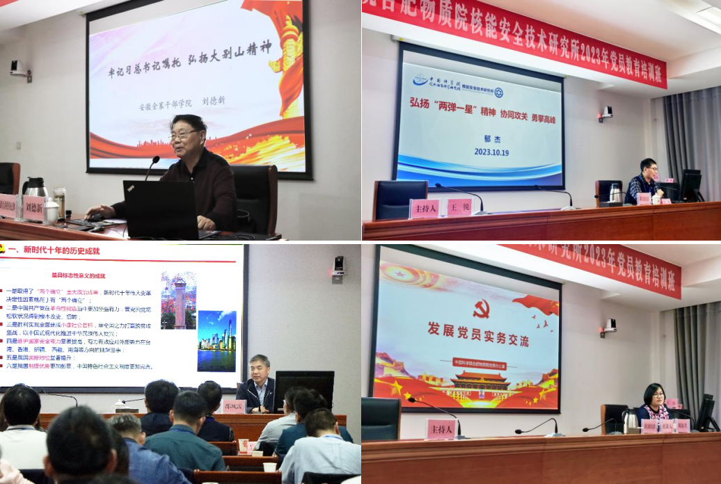 10月19日至20日,核能安全所党委在安徽金寨干部学院举办2023年党员教育培训班。这次培训班的主题是“党建引领根本,凝心聚力促发展”,旨在巩固学习贯彻习近平新时代中国特色社会主义思想主题教育成果,推动对党的创新理论的学习教育常态化长效化,进一步加强研究所基层党建促进发展工作。在所全体党员和入党积极分子参加了培训班。