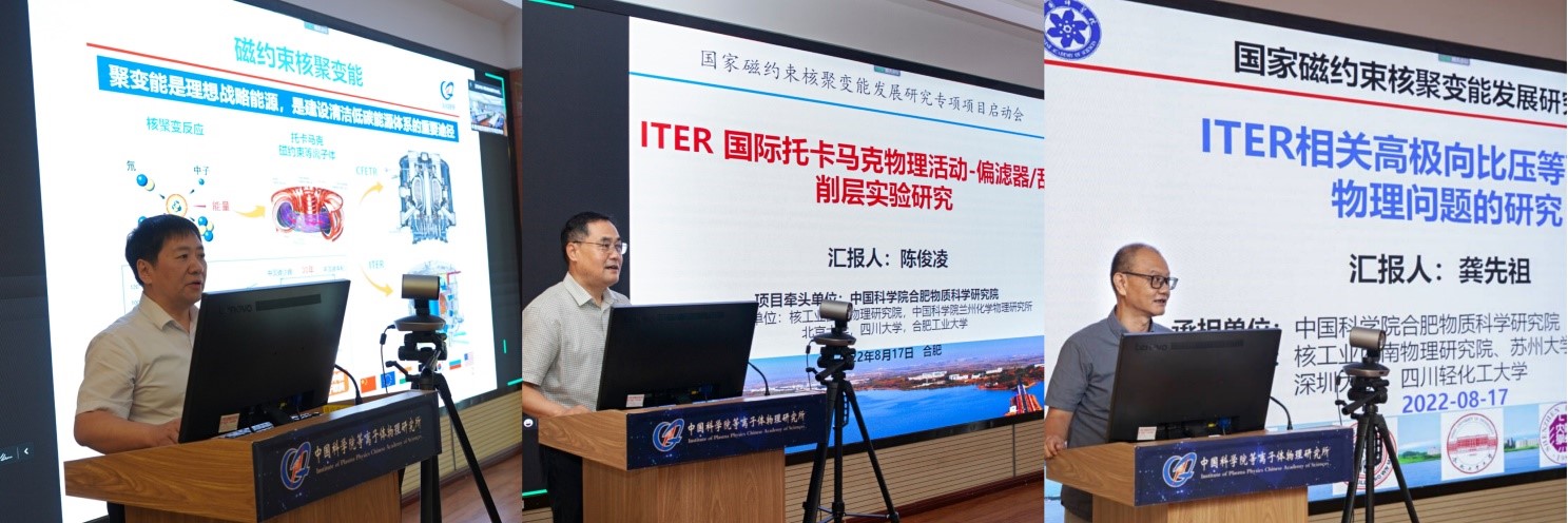 8月17日上午,由等离子体所牵头承担的国家磁约束核聚变能发展研究专项2022年度新立项项目启动会在安徽合肥顺利召开,拉开了项目实施的序幕。科技部核聚变中心主任罗德隆、研发处处长吴姝琴,合肥研究院副院长、等离子体所所长宋云涛,项目责任专家和来自国内十余家单位的二十多位同行专家、项目负责人、课题负责人及项目管理人员出席会议。启动会由等离子体所副所长陈俊凌主持.