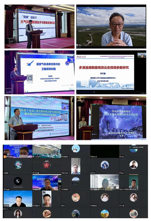 会议期间,刘文清院士、北京大学张远航院士、中科院空天院陈良富研究员、西安理工大学华灯鑫教授、中科院上海光机所刘继桥研究员、西北师范大学袁萍教授等分别作了题为“双碳目标下环境监测技术的发展机遇”“大气复合污染与十四五研究重点”“温室气体清单校核中的卫星探测问题”“多源遥感数据观测云宏微观参数研究”“ACDL研制过程和在轨测试情况”“闪电的光辐射特征及其在雷电探测与研究中的应用”等多篇特邀报告。此外,学术会议主要围绕环境光学新原理新方法、温室气体原位探测遥测、地基/机载/星载光学遥感、海洋光学及海洋探测、水体/土壤光学探测、新型光源技术/光电传感与环境光学应用、环境污染监测/应急预警及过程研究、大气环境化学及大气污染控制等领域进行了深入讨论与交流。