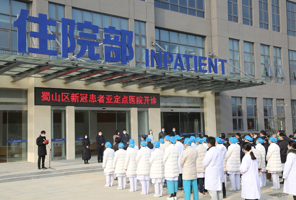 为缓解当前医疗救治资源急缺现状,进一步提高医疗资源使用效率,按照合肥市委市政府、合肥市卫健委统一部署,蜀山区委区政府、蜀山区卫健委积极协调,中国科学院合肥肿瘤医院新院区被设为蜀山区新冠患者亚定点医院。1月3日上午,合肥市蜀山区委副书记、区长杨森宣布,合肥肿瘤医院新院区亚定点医院正式开诊接收患者。