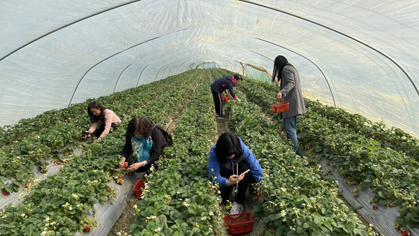 为庆祝“三八”国际妇女节,丰富女职工业余文化生活,3月8日,智能所工会精心组织所内女职工开展了“坚持科技自立自强,创新助力乡村振兴”主题活动。所内女职工近40人参加。大家一同前往长丰县乡村振兴成果突出的马郢社区,参观了马郢村史纪念馆,实地走访了村庄角落,深入了解马郢的乡村发展史及创新发展情况,近距离感受了农业科技创新推动下的新农村。并前往智慧农业谷数字草莓实验大棚,在可升降的管道上采摘了新鲜可口的草莓,大家对草莓的种植方式、生长环境的调控办法等进行了交流讨论。此外,大家还在马郢剧场的草坪前开展了团建拓展活动。