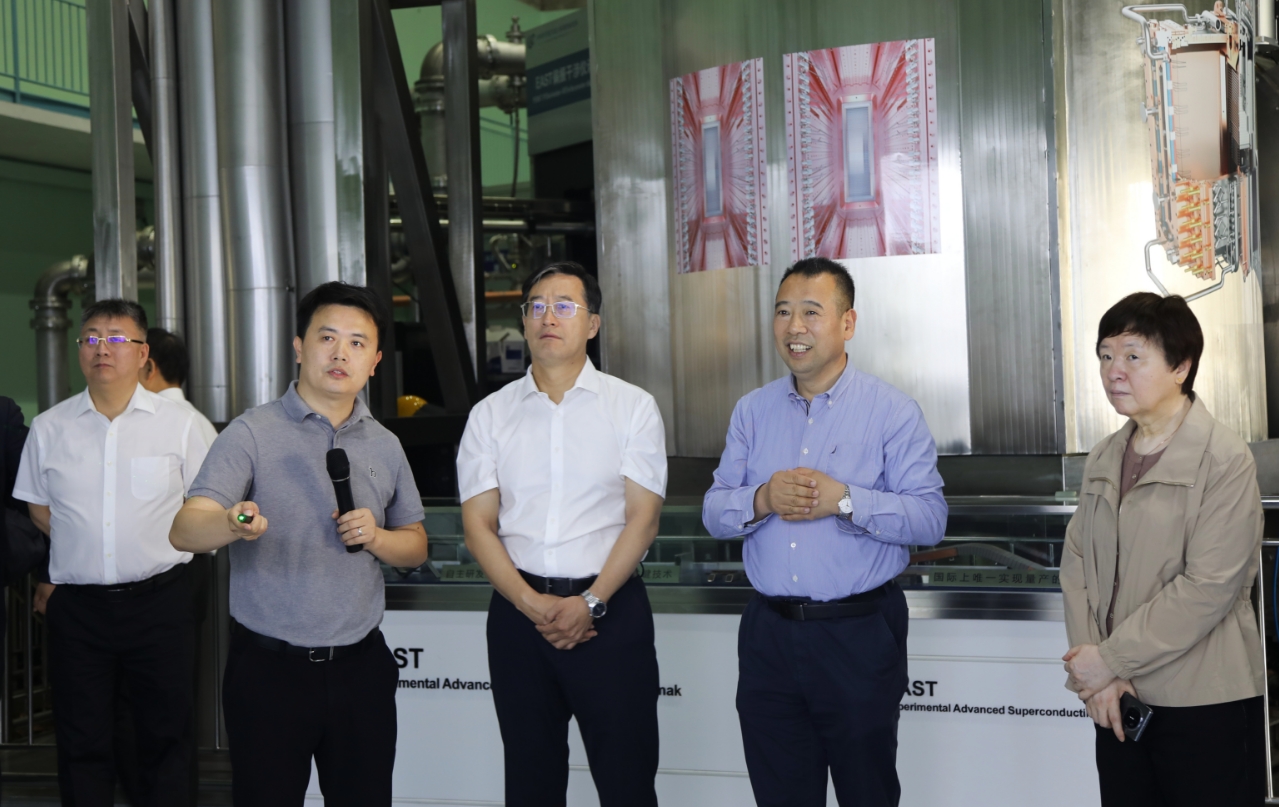 在调研过程中,王云鹏一行首先参观了全超导托卡马克核聚变实验装置(EAST),在EAST控制大厅和装置大厅,等离子体所党委委员钱金平介绍了等离子体所磁约束聚变研究创新成果、ITER国际合作以及全面参与合肥综合性国家科学中心建设等相关情况。