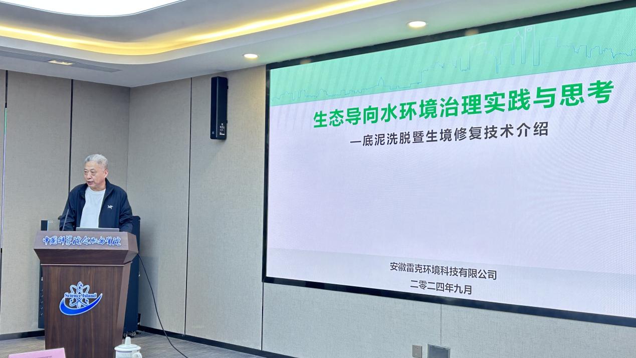 安徽雷克环境科技有限公司董事长吴敬东受邀作题为《基于底泥洗脱的污染水体生态修复案例简析》沙龙邀请报告。他介绍了底泥洗脱技术原理,通过展示北京凉水河、北戴河国家湿地公园等多个工程案例,证明了这些方法在生态修复、提升水质方面的显著效果。并希望联合各方力量,开展对三河三湖水环境进行更深层次的顶级研究,推动国内水体生态修复走向更高水平。他还提议通过“一带一路”拓展底泥洗脱生态修复技术的海外应用,为全球提供污染水体生态恢复的中国方案。