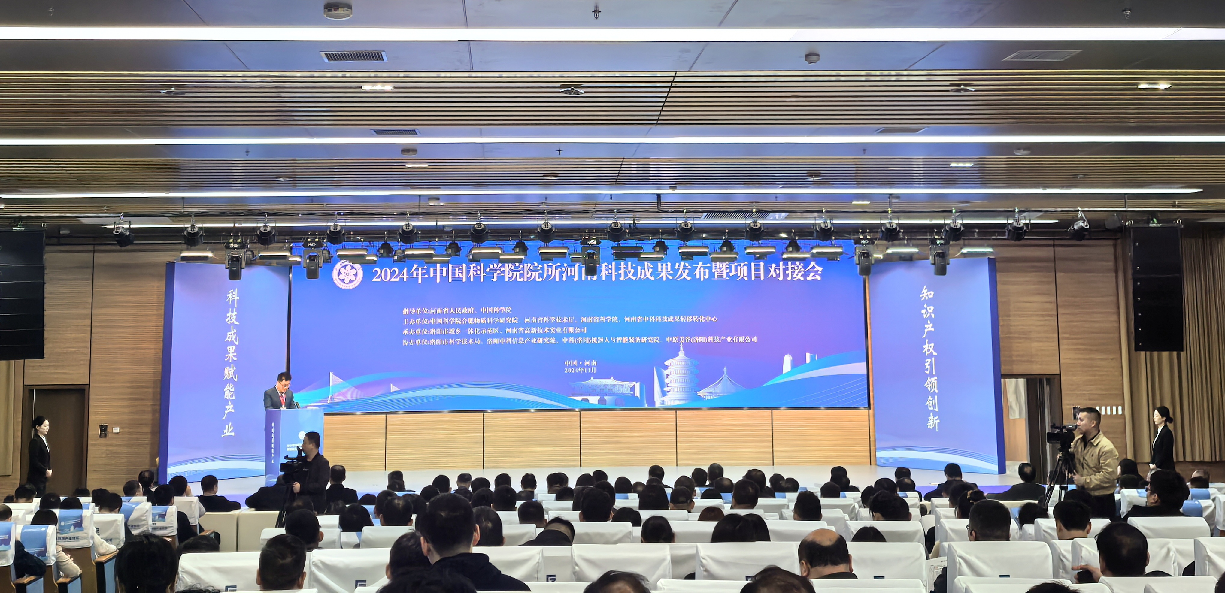 为深入贯彻二十届三中全会关于科技成果转移转化的决策部署,落实中国科学院与河南省科技合作协议的要求,围绕河南省主导产业,提升区域科技创新能力,培育新质生产力,推动中国科学院知识产权等科技成果在河南落地转化,10月31日至11月2日,由河南省人民政府、中国科学院指导,合肥物质院、河南省科技厅、河南省科学院、河南省中科科技成果转移转化中心主办的“2024年中国科学院院所河南科技成果发布暨项目对接会”在洛阳召开。合肥物质院党委副书记邹士平、副院长吴海信,河南省人民政府副秘书长赵学东,中国科学院院士、河南省科学院院长徐红星,洛阳市委副书记、市人民政府市长徐衣显,河南省科学技术厅副厅长、党组成员何守法以及中国科学院科研院所的相关领导出席会议,本次会议共计600余位专家、企业家参会进行对接交流。