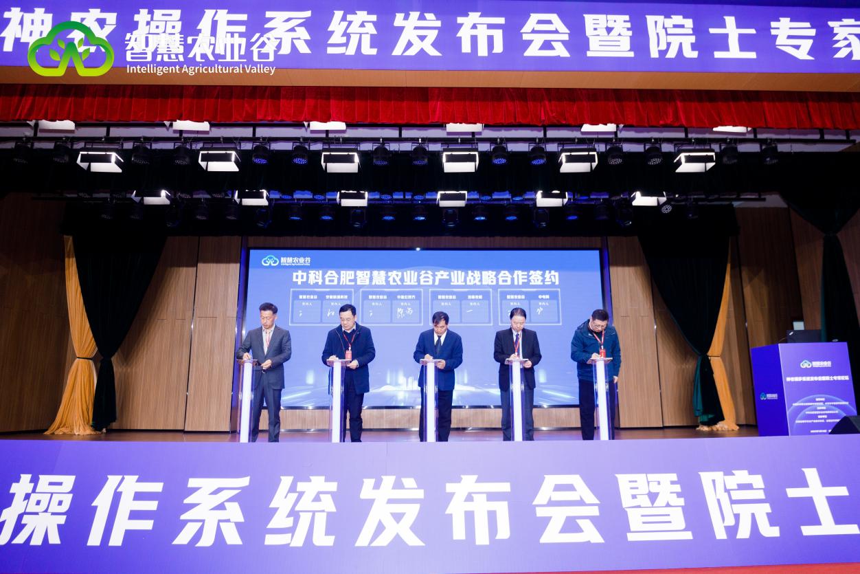 1月19日,“神农操作系统发布会暨院士专家论坛”在合肥市长丰县宇桥科技生态园召开。本次发布会由中科合肥智慧农业谷主办,中国科学院合肥物质院、中共长丰县委科技委员会指导,安徽省数字农业产业技术体系、省科学家企业家协会、省院士专家联合会共同协办。中国科学院合肥物质院副院长吴海信、科技发展处处长邓国庆、智能所副所长宋全军,长丰县委副书记、县长李卫,县领导江浩、王丰等出席发布会。