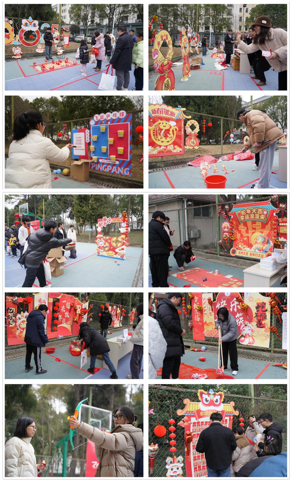 游园会在充满怀旧气息的兔子舞中拉开序幕。此次活动精心设计了多项精彩纷呈的项目,师生们热情参与,尽情享受这份难得的休闲时光。“圈中幸运”项目,参与者手持圆环瞄准目标投掷,每一次成功套中奖品都引来阵阵欢呼;“百步穿杨”让人感受到传统技艺所蕴含的专注与力量之美;“幸运滚滚乐”中,参与者根据可乐瓶滚到的位置获得相应奖品,过程紧张刺激;大家在“蛇年钓心愿”项目中通过钓鱼的方式钓取新年祝福;“快乐长筷夹”考验着师生们的耐心和细致程度;而“沙包丢丢乐、好运投壶、飞运乒乓球、一起来做年夜饭”则考验着大家的投掷技巧和手眼协调能力,不少人在游戏中展现出了惊人的准确度;“新年猜猜猜”环节更是在寓教于乐中将“党纪党史,所情所况”的知识植入人心。