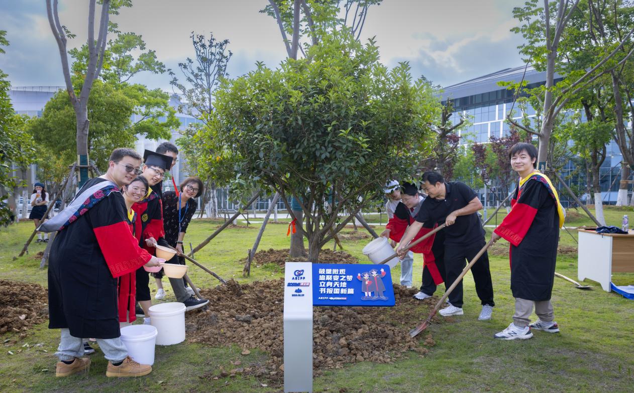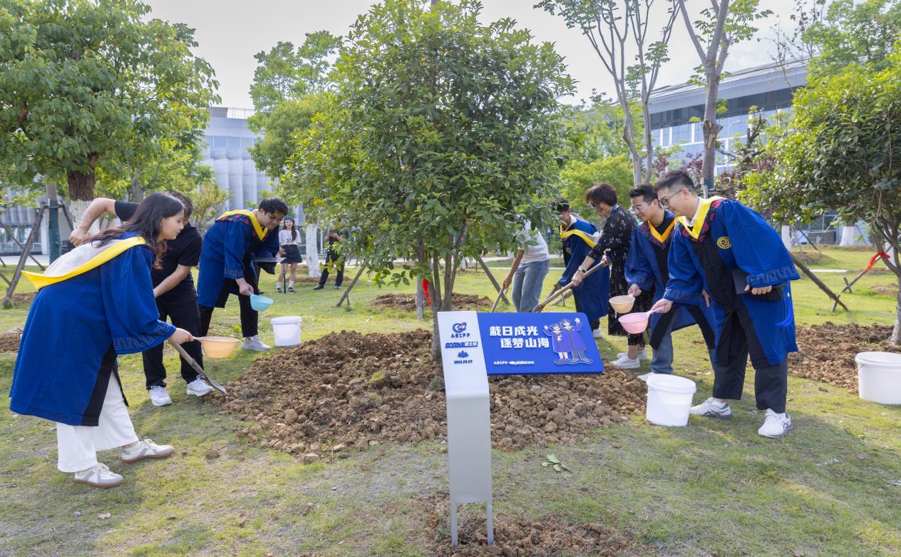 在温馨的氛围中,师生共同将写满毕业祝福与个人心愿的“时间胶囊”埋入树下。这承载着青春印记的胶囊,寓意着“今日深耕科研沃土,静待他日创新硕果”。随后,师生们挥锹培土、扶苗浇水,共同栽下两棵象征“科教双馨”的桂花树。