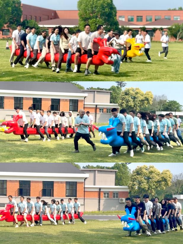 在旱地龙舟比赛中,一百余名成员组成的十支队伍热情参与。比赛开始前,所党委副书记、工会主席王锐向所有参赛队员致以节日的祝福,并鼓励大家在比赛中展现风采、团结协作、力争上游。比赛开始后,队员们以充气龙舟为船、以脚为桨,在百米赛道上展开了激烈竞速。在震天的口号声和加油声中,队员们将传统龙舟赛的“同舟共济”精神转化为陆地上的协作默契。经过紧张而激烈的角逐,最终三室一队荣获比赛冠军、四室一队荣获亚军,硕士生代表队和综合办代表队并列季军,其他队伍获得了优秀组织奖。