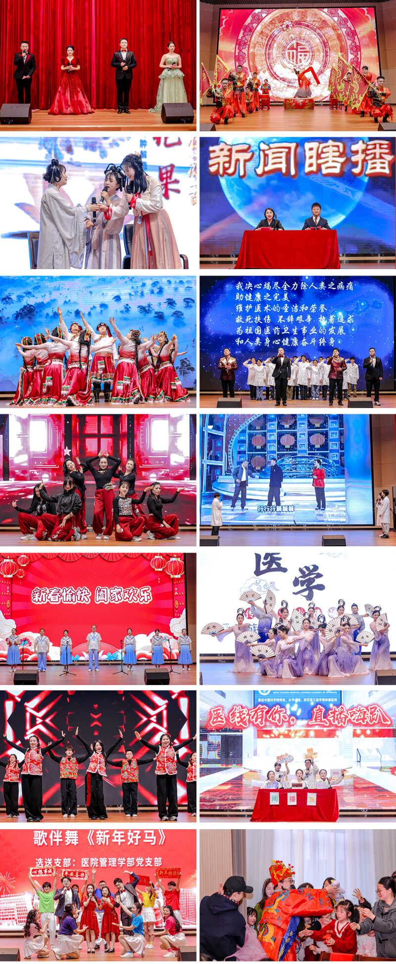 一场来自肿瘤医院青年职工的热闹开场舞《旗开得胜 鼓舞飞扬》拉开了联欢会的序幕,演员们用尽情的表演向大家传递春节的喜庆氛围;由创新药物研究中心党支部选送的创意配音《卖拐——科研版》和医学影像学部党支部推选的情景剧《影像直播间》,生动形象地展现实验室和医院里的奇闻趣事,赢得了观众的阵阵欢笑和掌声;瑜伽舞蹈协会选送的舞蹈《新年no problem》和肿瘤医院药学学部党支部选送的舞蹈《好运来》则充分体现了年轻人的蓬勃活力;由综合办党支部带来的音乐快板《竹板赞歌》和肿瘤医院护理学部党支部选送的情景歌舞《寻迹·医圣》则是以出色的设计和演绎,点燃了全体观众的热情。