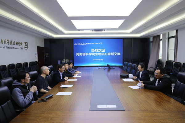 4月24日下午,河南省科学院生物中心副主任郭唯、开发办主任于立芹到中科院合肥物质院健康所交流访问,健康所副所长方志友等接待了来宾一行。