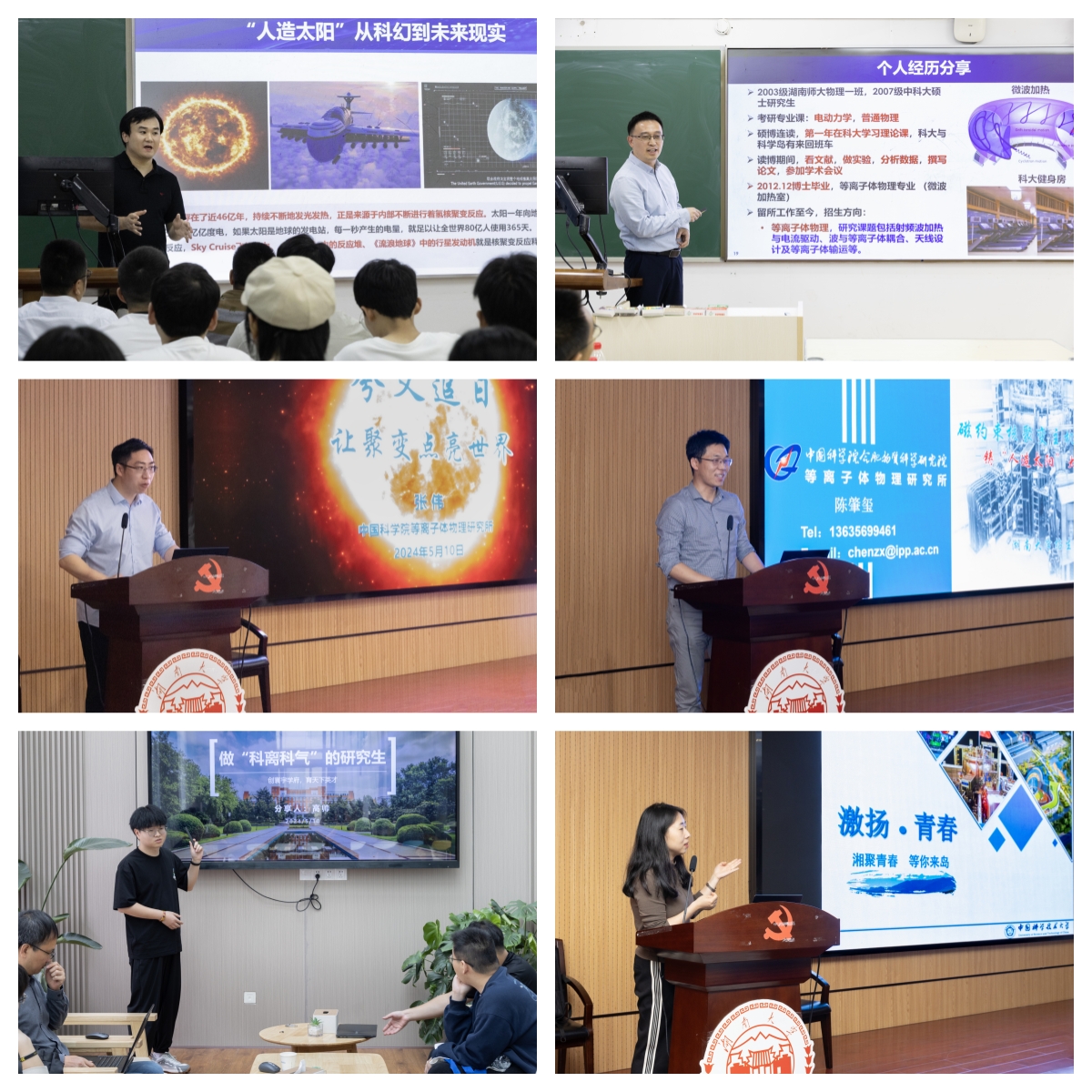 本次活动分别走进了中南大学、湖南大学和湖南师范大学。活动中,等离子体所团委书记叶华龙为同学们做“夸父追日梦,人造太阳路”科普报告,从核聚变研究的原理、意义,到等离子体所磁约束核聚变研究取得的重大成果,讲述了等离子体所大科学团队半个世纪以来为聚变事业孜孜以求的艰辛历程和克服重重苦难立足自主创新的聚变精神。