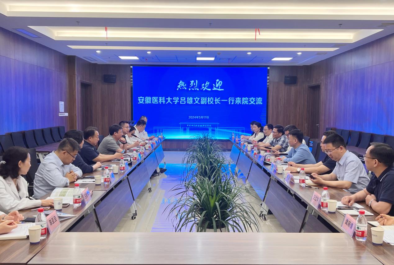 5月17日下午,安徽医科大学党委常委、副校长吕雄文一行访问中国科学院合肥肿瘤医院。中国科学院合肥物质院健康所所长刘青松,健康所党委书记、肿瘤医院院长王宏志等接待了来访团队,双方就医学研究、人才培养以及临床教学等议题进行了深入交流。