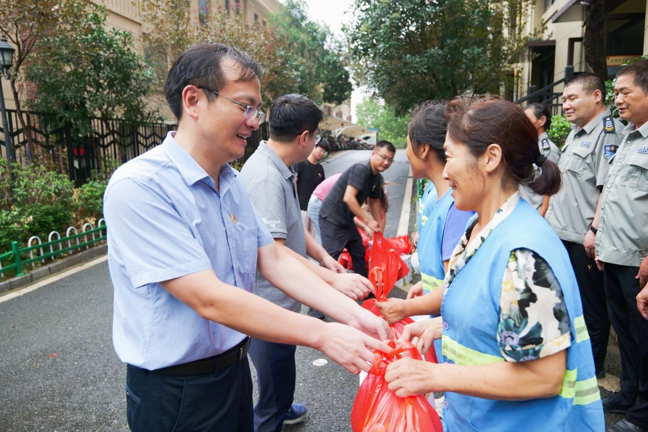 活动现场,双河社区、合肥创新院、科大硅谷相关负责人与各行业一线工作者们沟通交流,对他们一直坚守各自岗位、辛勤付出表达敬意,感谢他们用汗水浇灌着美丽高新,并为他们送上节日暖心礼包,祝愿他们度过一个愉快的中秋佳节。