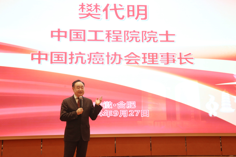9月27日下午,中国抗癌协会培训基地揭牌仪式在合肥举行,中国抗癌协会理事长樊代明院士、秘书长赵勇,中国科学院合肥肿瘤医院院长王宏志等共同为落户在中国科学院合肥肿瘤医院的5项基地揭牌。樊代明院士还代表中国抗癌协会授予中国科学院合肥肿瘤医院“中国抗癌协会团体会员单位”,并赠送《中国肿瘤整合诊治(CACA)指南》。