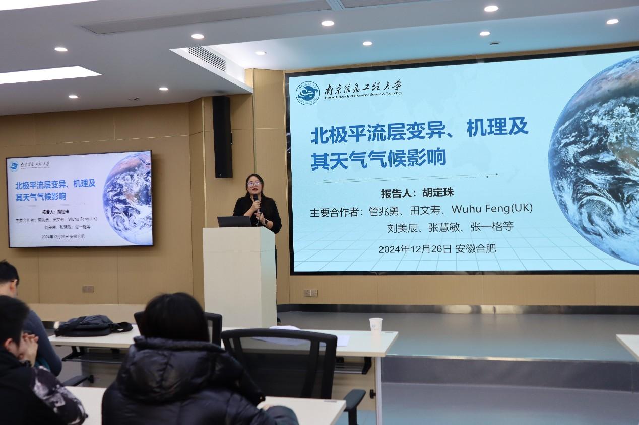 胡定珠教授则作了题为《北极平流层变异、机理及其天气气候影响》的报告。她指出,因北半球地理环境复杂,与南半球海洋占比大不同,北极极涡位置不稳定,这也是北极臭氧空洞形成迟于南极臭氧空洞的主因,由此进一步分析了北极平流层变异的特征和机制,揭示了平流层极涡与臭氧变化的关系,并探讨了这些变化对东亚天气气候的潜在影响。她指出,目前平流层过程的影响尚未充分纳入气候预测,未来的研究将帮助提高对中高纬度平流层和对流层相互作用的理解。