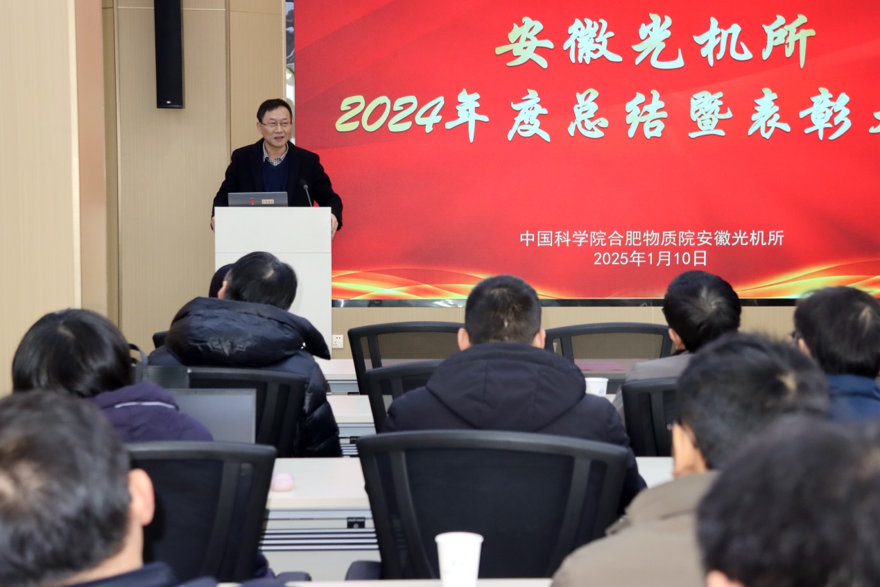 吴海信副院长做总结讲话,他充分肯定了安光所2024年取得的一系列成绩,强调了这些成绩得益于党政班子同舟共济和全体职工协力奋进。他指出未来的科技攻关主要聚焦于“要地之战、关键之举、焦点之争”,希望安光所上下同心协力、众志成城,努力为全院科技事业再上新台阶贡献力量。