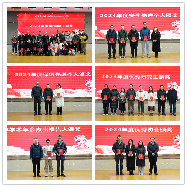 大会还对2024年度优秀职工、安全工作先进个人、保密工作先进个人、优秀研究生、青年学术年会杰出报告人、优秀协会进行了表彰。