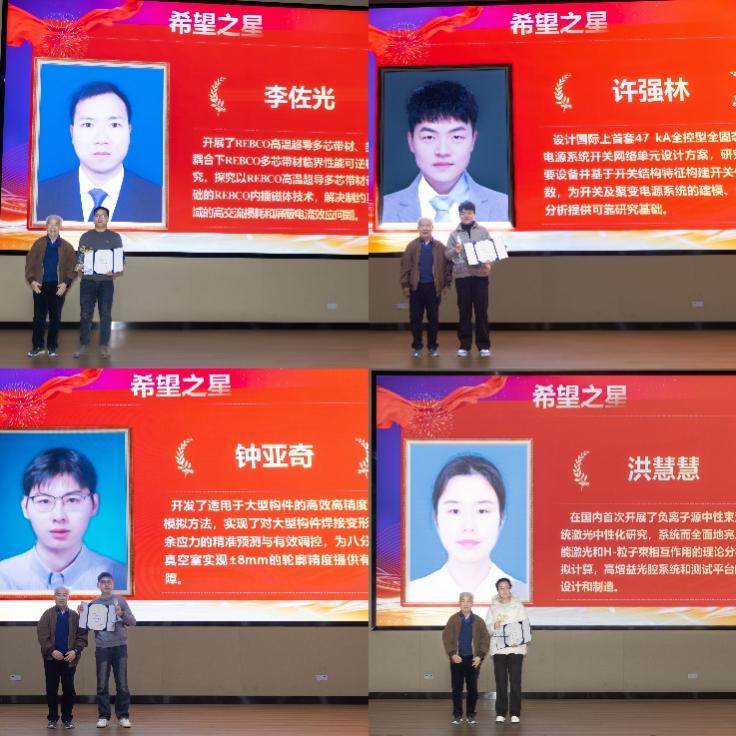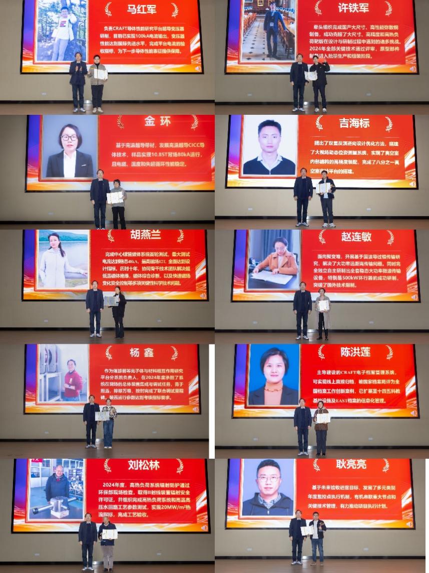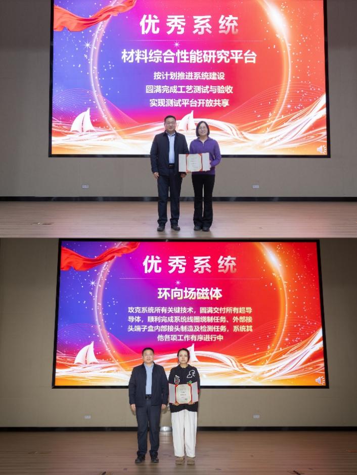 随后,总师办副主任秦经刚研究员从工程概况、系统进展、管理模式和未来计划等方面详细介绍了2024年度CRAFT项目取得的重要进展和亮点成果。陆坤副所长宣读表彰决定,刘甫坤常务副所长、李建刚院士、万元熙院士分别为优秀系统代表、年度之星和希望之星获得者颁发荣誉证书和奖杯。优秀系统代表、年度之星代表和希望之星代表分别作了分享报告。
