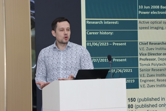 俄罗斯大气光学所首席教授、副所长马克西姆·特里古布(Maksim Trigub)与亚历山大·科诺申金(Alexander Konoshonkin)来访期间,分别作了题为《应用图像增强器的高速成像光学系统研究》和《面向卫星轨道精确校准的光学建模研究》两篇专题报告,并与安光所科研人员进行了深入交流。