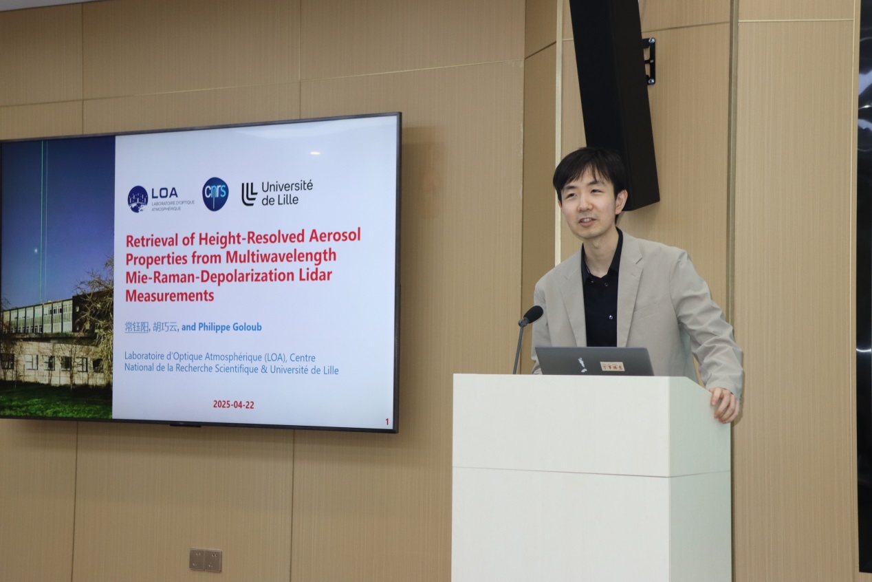 4月22日,法国国家科学研究中心(CNRS)、里尔大学大气光学实验室(LOA)常钰阳博士访问安光所,并做了题为《多波段米-拉曼-退偏激光雷达协同观测反演气溶胶光学-微物理特性廓线研究》的学术报告。