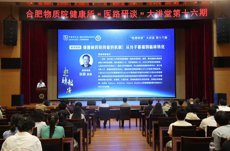 5月29日,中国科学院合肥物质院健康所举办第16期“医路研谈”大讲堂活动,本期活动邀请了浙江大学医学院附属第一医院讲席教授张颖作专题学术报告,介绍其团队在细菌耐药与持留机制研究领域的最新突破。健康所领导班子成员、科研临床骨干及研究生等100余人参会,会议由健康所副所长方志友研究员主持。