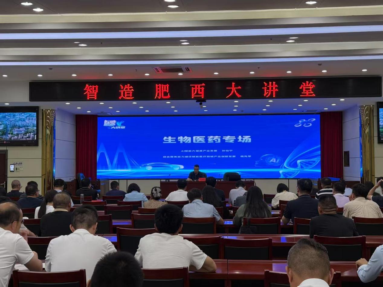7月22日,由肥西县委组织部(县委人才工作局)、县委党校、肥西县大健康产业集群党委共同主办的“智造肥西大讲堂”生物医药专场启幕,讲堂设有1个主会场和14个分会场,全县党政机关、国有企事业单位、产业园区企业近400人报名参加。中国科学院合肥物质院智能所首席科学家孙怡宁研究员,运动健康中心主任杨先军研究员应邀出席并分别作专题讲座。