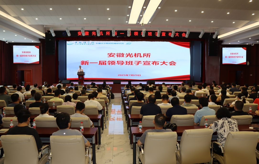 7月29日上午,中国科学院合肥物质院安光所新任领导班子宣布会召开。合肥物质院党委书记周传忠、副院长阚瑞峰,党办主任邵风雷、人事处处长王鸿梅出席会议。安光所新老班子成员、所属部门负责人、科研与管理骨干等参加会议。