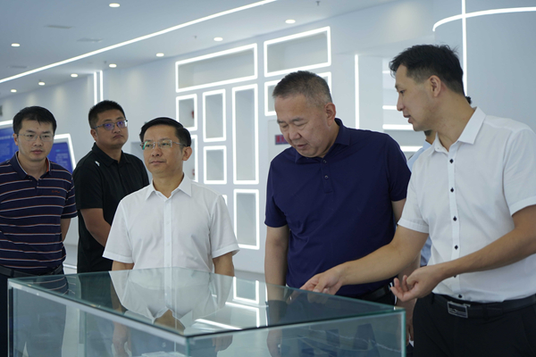 调研期间,胡坤向孔祥永详细汇报六安院的发展历程、主营业务、平台建设等重点工作情况。随后,孔祥永一行参观六安院科技成果展厅,对六安院在科技创新与成果转化方面取得的成果进行深入了解,并与部分入驻企业负责人就技术攻关、市场应用和发展需求等方面展开了交流。