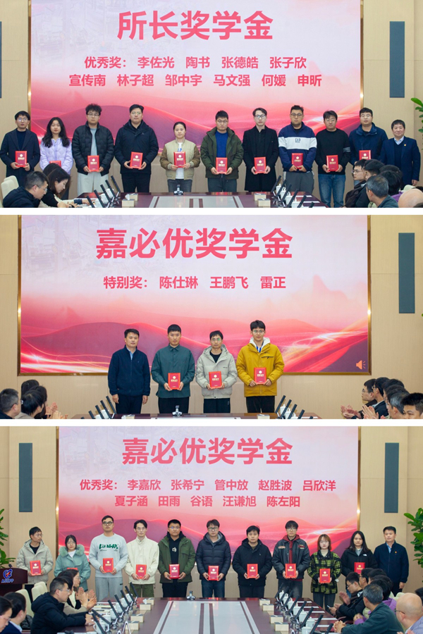 颁奖仪式上,宋云涛、钱金平为所长奖学金及嘉必优奖学金获奖者颁奖。刘云昊、严庆、张文敏、李佐光、陶书、张德皓、张子欣、宣传南、林子超、邹中宇、马文强、何媛、申昕获所长奖学金;陈仕琳、王鹏飞、雷正、李嘉欣、张希宁、管中放、赵胜波、吕欣洋、夏子涵、田雨、谷语、汪谦旭、陈左阳获嘉必优奖学金。