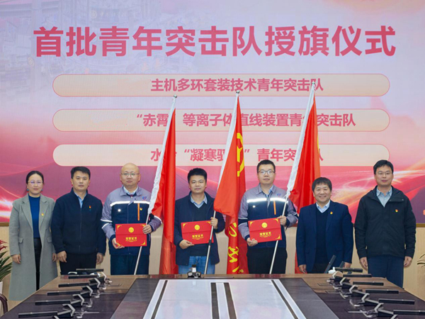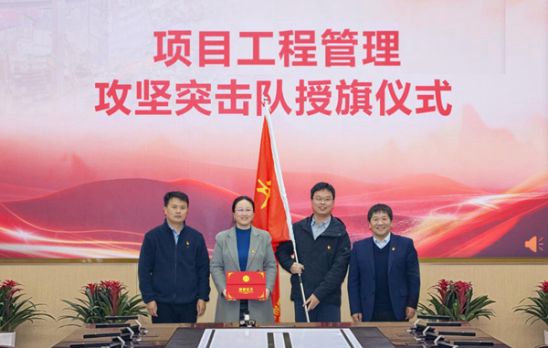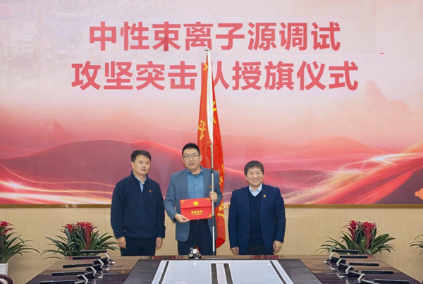 授旗仪式上,宋云涛、钱金平共同为中性束离子源调试攻坚突击队、大装置项目工程管理攻坚突击队授旗和颁发证书。两支突击队代表表示将牢记授予旗帜代表的责任、使命与担当,履职尽责,全力保障项目任务顺利推进。仪式宣布成立首批三支青年突击队,分别为主机多环套装技术青年突击队、“赤霄”等离子体直线装置青年突击队以及大装置设备水冷“凝寒驭能”青年突击队,宋云涛、钱金平为首批青年突击队授旗和颁发证书。各队队长表态将强化团队协作、聚力科研攻关,保障项目顺利实施,对标国际一流标准,持续优化装置性能,确保攻坚任务圆满完成。