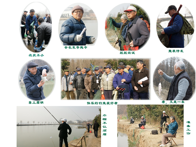 12月23日中午1:00,阳光高照,气温适中。合肥物质科学研究院离退休老年钓鱼协会年度钓鱼比赛在湖滨渔塘举行。鱼塘四周,彩旗飘扬,按照抽签顺序,36个钓鱼摊位早已各就各位,人们喜笑颜开,跃跃欲试,期待着喜人的收获。会长一声“开始”,大家纷纷抛下鱼竿。十几分钟后,鱼儿开始陆续上钩了。不到一个小时,有人鱼篓里就有六七条鱼了。