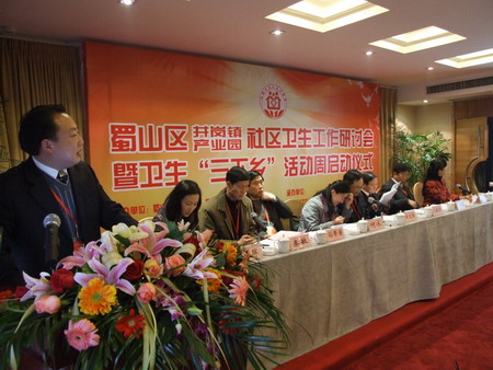 会议由蜀山区卫生局党委书记陈建平主持,安徽省卫生厅社妇处处长沈敏祥、合肥研究院党委副书记单文钧、合肥市卫生局副局长陈守春、蜀山区委常委、副区长何冰、蜀山区卫生局局长孙帮源以及井岗镇政府、产业园区管委会相关领导出席会议并讲话。相关医疗单位的领导、辖区内有关部门负责人和专职人员200多人出席了会议。