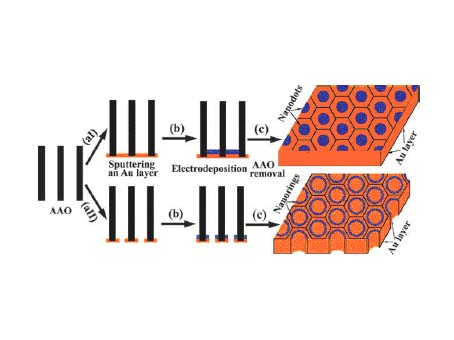 2月8日, Nature Publishing Group (NPG)的Asia Materials报道了固体所杨大驰博士,在导师孟国文研究员的指导下,研发的一种工艺简单、成本低廉、能够制备大面积纳米量子点与纳米量子环的普适方法——基于多孔氧化铝模板的控制蒸金与电沉积相结合方法。