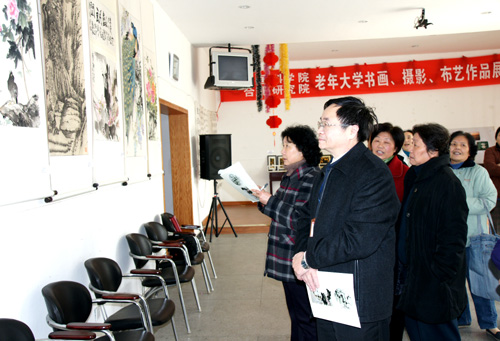 研究院党委副书记、纪委书记、老年大学校长单文钧参观作品展