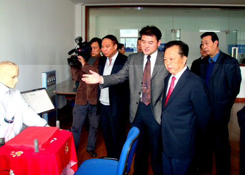 王伟成一行参观了先进制造技术研究所的虚拟样机实验室、机器人系统实验室、智能自动化实验室以及精密加工与检测实验室,听取了相关项目及样机介绍,详细了解了先进制造技术研究所在机器人应用技术研究的进展。王伟成对先进制造技术研究所的工作给予了高度肯定,对研究所完善的科研基础设施、实验条件以及优美的办公环境以及完善的功能配套予以赞赏,他鼓励广大科研人员要潜心研究,努力把研究所继做强做大,争取更好的发展。