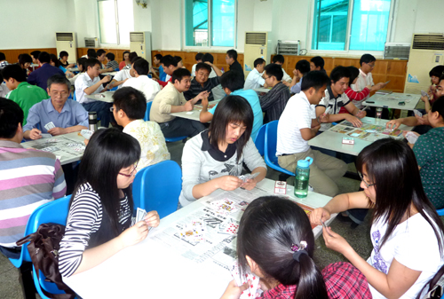 为活跃智能所春季文体活动氛围,选拔高水平队员参加研究院第七届“科学岛之春”运动会八十分比赛,该所于5月6日举办了一场八十分选拔赛,34对选手参加了比赛。比赛现场秩序井然、气氛热烈,选手们根据比赛规则和对阵形势,聚精会神、缜密思考、娴熟配合、精彩对局,沉浸在升级对战的乐趣之中。最终,经过两轮抽签和实战,有10对选手脱颖胜出,成功晋级到正式参加“科学岛之春”运动会八十分比赛之列。