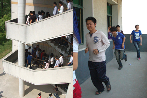 为纪念“5.12”汶川大地震2周年,针对学校人群密集特点和培养学生逃生自救技能,提高自我保护意识和心理素质,在突发情况下的进行有秩序的紧急疏散, 5月12日,合肥科技学校举行了地震紧急疏散演习,在校10个班级500多人参与了此次演习。