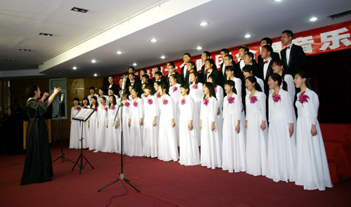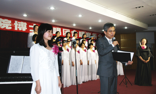 虽然没有富丽堂皇的演出大厅,也没有令人眼花缭乱的布景灯光,博士合唱团美妙的和声、青春的活力、奔放的激情、训练有素、清新淡雅的台风深深地吸引了全体观众。特别是研究生院副院长兼合唱团领队马石庄教授亲自客串嘉宾主持,带领来宾和观众一起欣赏合唱艺术的魅力,品味合唱带来的快乐,其诙谐幽默的主持风格,引得台上台下笑声不断掌声连连,现场气氛十分活跃,显示出科学院和谐大家庭的温馨与融洽。