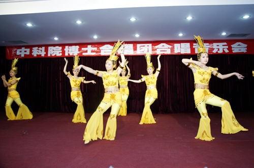 合肥研究院研究生艺术团的演员们在合唱节目间隙穿插表演了美轮美奂的舞蹈 “敦煌”、“天路”、钢琴与小提琴合奏“梁祝”,研究院梅涛副院长也即兴上台用葫芦丝吹奏了一曲“月光下的凤尾竹”,为演唱会增添了一道更加靓丽的色彩。