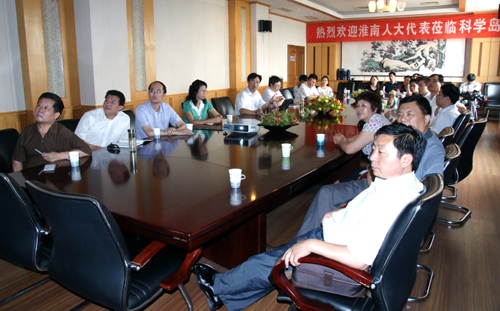 6月23日,淮南市人大常委会副主任梁立文等领导率20余名在淮南工作的安徽省人大代表来合肥物质科学研究院调研,受到研究院党委书记匡光力、副书记兼纪委书记单文钧、等离子体所党委书记张晓东等热情接待。