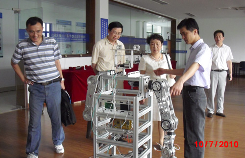 梅涛详细介绍了先进制造所的建所愿景、使命以及战略规划。骆敏舟简要介绍了研究所目前承担的各类国家项目和企业委托项目、先进的设备以及实验室建设情况。随后,张淑林一行分别参观了先进制造所的精密加工与检测实验室、汽车电子技术实验室、智能自动化实验室、机器人系统实验室和虚拟样机实验室。张淑林对先进制造所研发的一系列有关机器人的项目,如仿阿米巴机器人、老人服务机器人、水上行走机器人、爬壁虎机器人、搜救机器人手爪、工业取料机械手、电机定子自动装配生产线系统、大型马车底盘自动焊接生产线等颇感兴趣,详细询问了其性能及特点。张淑林对先进制造所的工作和业绩给予了高度肯定,对研究所完善的科研基础设施、实验条件以及优美的办公环境以及完善的功能配套予以赞赏。双方还就联合培养研究生等问题进行了交流。