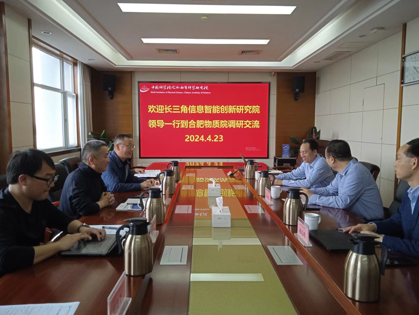 4月23日 ,长三角信息智能创新研究院常务副院长承孝敏、副院长朱孝军等一行5人到物质院对接交流,合肥物质院院长刘建国等接待来宾一行。