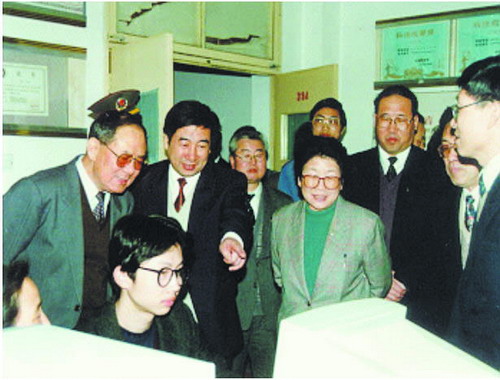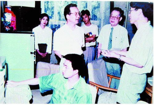 1995年7月13日,温家宝同志在时任中科院院长周光召的陪同下,听取智能所研究员熊范纶(右一)的汇报